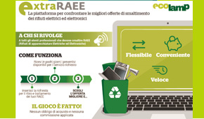Non sai a chi rivolgerti? Da oggi puoi affidarti ad ExtraRAEE, il nuovo servizio del consorzio Ecolamp, per il ritiro e il trattamento di qualunque tipologia e quantitativo di RAEE. Si amplia così l’offerta Ecolamp per i professionisti e, grazie ad ExtraRAEE, è il cliente a scegliere la proposta più conveniente tra quelle che riceve da portale.