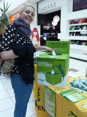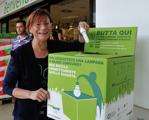 Ecolamp e Legambiente hanno invitato tutti a farsi immortalare mentre, presso il punto informativo, si getta una finta lampadina nell’apposito contenitore. Un gesto per dare il buon esempio con il proposito, la prossima volta, di consegnare una vera lampadina esausta presso il punto vendita dove se ne sta acquistando una nuova (in base al sistema dell’uno conto uno) o di gettarla negli apposti contenitori presenti nelle Isole Ecologiche cittadine.