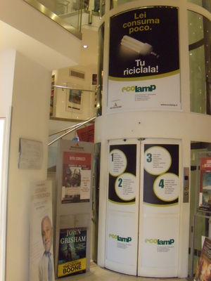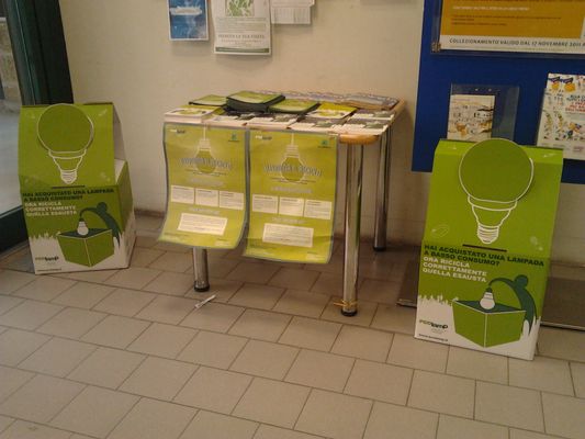 Vero fulcro del progetto, le librerie Mondadori. Ecolamp propone, infatti, un’originale attività sul territorio, utilizzando come media le vetrine delle librerie e un milione di shopper, riportanti il vademecum della corretta raccolta differenziata delle lampade a basso consumo, che sono state distribuite presso i 32 punti vendita Mondadori Retail, tra cui quelli di Milano, Roma, Torino, Padova, Brescia, Genova, Bologna, Napoli, Firenze e Palermo e i 489 punti vendita franchising.