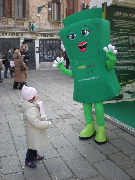 Dal 26 febbraio all’8 marzo 2011 a Venezia, Campo San Polo,la zona di maggior richiamo per le famiglie, vedrà oltre alla pista di pattinaggio animata da spettacoli e da bravissimi pattinatori, un grande gazebo trasformato ne “Il Bosco della Luce e del Riciclo”, area incantata in cui artisti, attori, giocolieri, fantasisti, acrobati metteranno in scena spettacoli comici il cui fil rouge sarà trasmettere i valori della tutela ambientale, approfondendo il tema della raccolta differenziata delle lampade fluorescenti esauste.