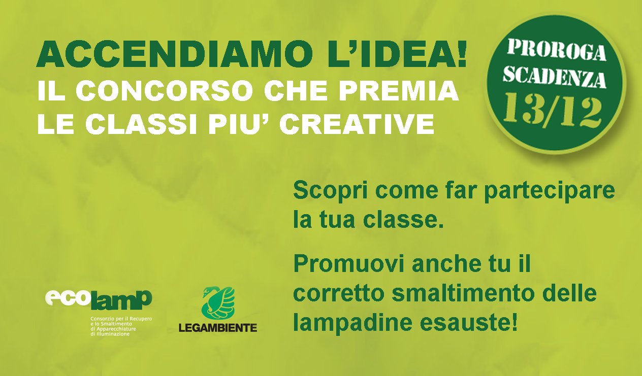 Buone notizie per le 11.000 scuole invitate da Ecolamp e Legambiente a partecipare al concorso “Accendiamo l’idea”, indetto lo scorso mese di ottobre con l’obiettivo di stimolare la creatività e l’ingegno degli studenti, dando loro l’opportunità di riflettere ed essere più consapevoli dell’importanza della raccolta e dello smaltimento corretto delle lampadine.